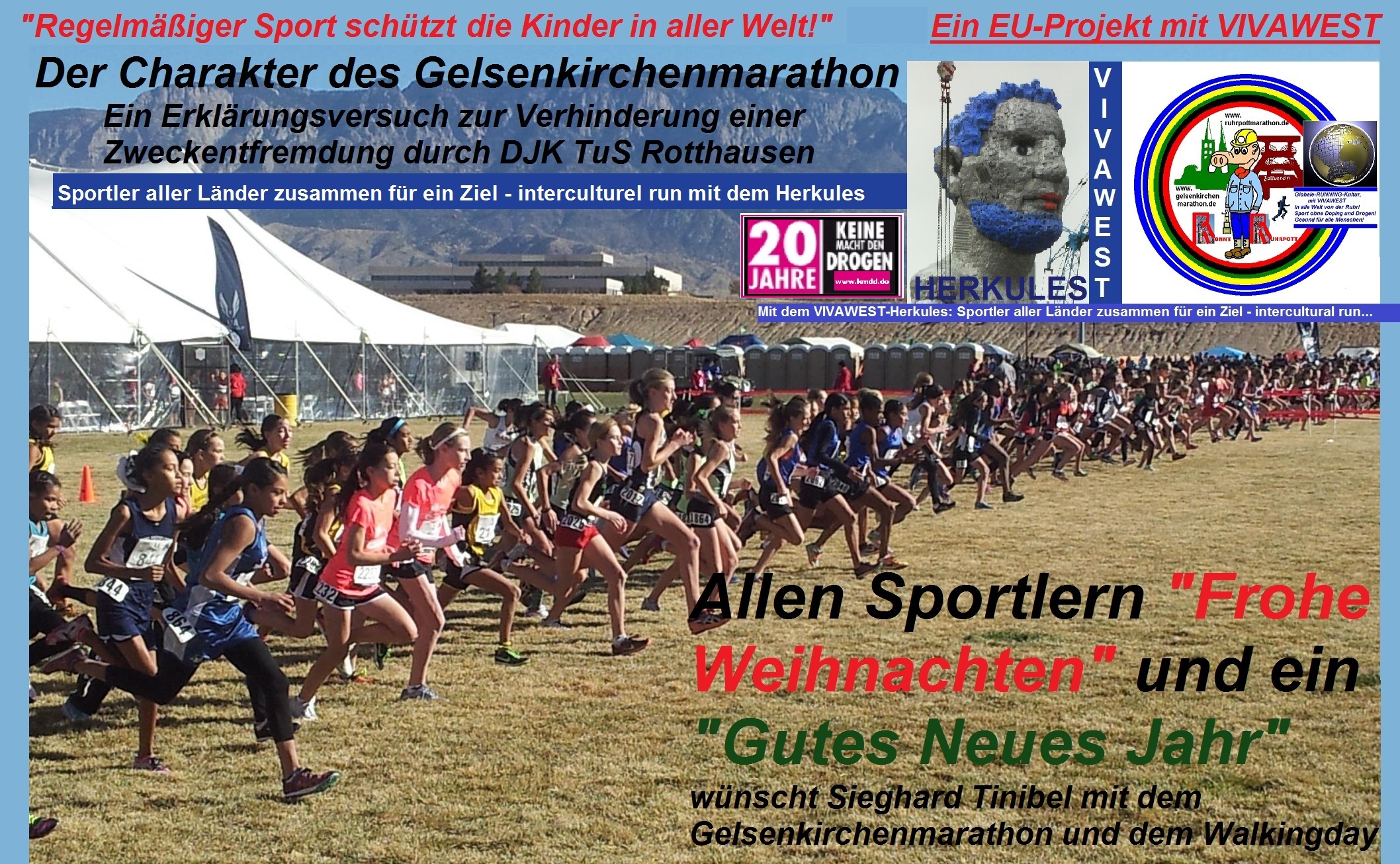 Sieghard Tinibel bat mehrfach als Ersatz für den Missbrauch seines Lebenswerkes Gelsenkirchens Oberbürgermeister, Herrn Frank Baranowski und VIVAWEST, um weitere Unterstützung bei der Fortsetzung seines Projekts gegen Doping und Drogen, welches ansonsten - wie im ersten Ansatz am 28. 04. 2012 erkannt - weiterhin durch DJK TuS Rotthausen zerstört wird... Klick hier!Charakter des Gelsenkirchenmarathon - ein Einblick in die Arbeit eines DOSB-Sportlehrers und Vereinsvorsitzenden im Beruf und im Ehrenamt... Klick hier! |